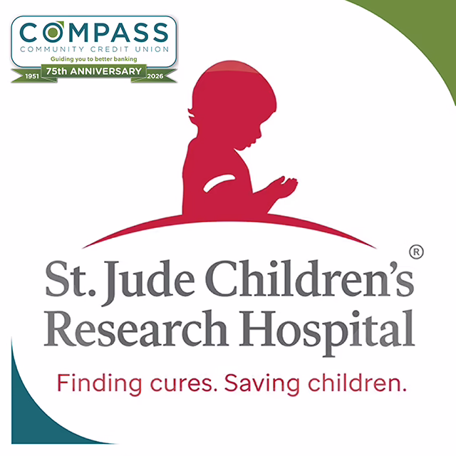 Compass is proud to give back by supporting St. Jude Children’s Research Hospital, where families never get a bill—so they can focus on helping their child fight cancer. Be a hero for kids at St. Jude! Join Compass Community Credit Union in supporting life-saving care and research at St. Jude Children’s Research Hospital. Every dollar brings hope, healing, and a chance for a cure. Let’s change lives—together! Visit https://www.stjude.org/ to learn more and make a difference.