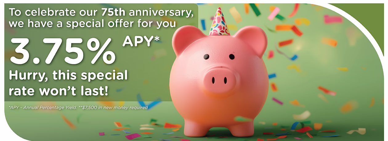 Earn 3.75% APY* on a 7-month term share certificate. **A minimum of $7,500 in New Money is required for special rate.